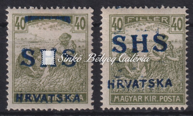 Description | 1918. SHS Horvátország 40f Arató bélyegen elcsúszott felülnyomat! Bodor M. bélyegszakértő bevizsgáló jelével. / 1918. SHS Croatia Slipped overprint on 40f Harvester stamp! With the stamp expert M. Bodor's proof sign on the backside. |