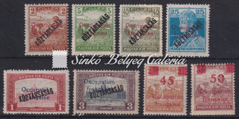 Description | 1919. Arad (Francia megszállás) 8db bélyeg. Bodor M. bélyegszakértő bevizsgáló jelével. / 1919. Arad (French occupation) 8 stamps. With the stamp expert M. Bodor's proof sign on the backside! |