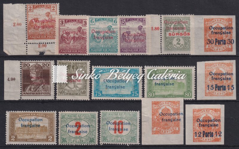 Leírás | 1919. Arad (Francia megszállás) 16db bélyeg. Bodor M. bélyegszakértő bevizsgáló jelével. / 1919. Arad (French occupation) 16 stamps. With the stamp expert M. Bodor's proof sign on the backside! |
