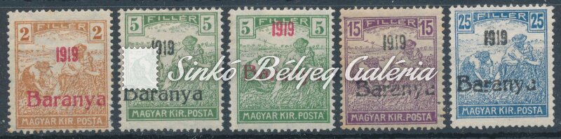 Leírás | 1919. Baranya (I.) (Szerb megszállás) 5db Arató bélyegen az évszám második 1-es száma vékonyabb. Bodor M. bélyegszakértő hátoldali bevizsgáló jelével. / 1919. Baranya (I.) (Serbian occupation) On 5 Harvester stamps, the second number 1 of the year, is thinner. With the stamp expert, M. Bodor's proof sign on the backside. |