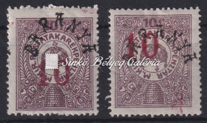 Leírás | 1919. Baranya (II.) (Szerb megszállás) 10f Postatakarék bélyegen elcsúszott a felülnyomat! Bodor M. bélyegszakértő bevizsgáló jelével! / 1919. Baranya (II.) (Serbian occupation) Slipped overprint on 10f Postal savings stamp! With the stamp expert, M. Bodor's proof sign on the backside! |