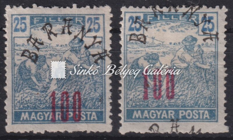 Leírás | 1919. Baranya (II.) (Szerb megszállás) 25f bélyeg eltolódott felülnyomattal! Bodor M. bélyegszakértő bevizsgáló jelével! / 1919. Baranya (II.) (Serbian occupation) 25f stamp with shifted overprint! With the stamp expert, M. Bodor's proof sign on the backside! |