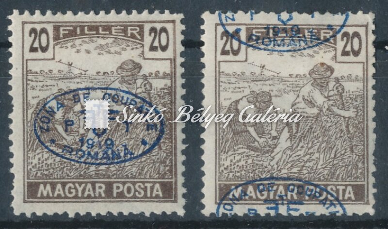 Leírás | 1919. Debrecen (I.) (Román megszállás) 20f Magyar Posta bélyeg jelentősen elcsúszott felülnyomattal. Bodor M. bélyegszakértő hátoldali bevizsgáló jelével. / 1919. Debrecen (I.) (Romanian occupation) 20f Hungarian Post stamp with significantly slipped overprint. With the stamp expert, M. Bodor's proof sign on the backside. |