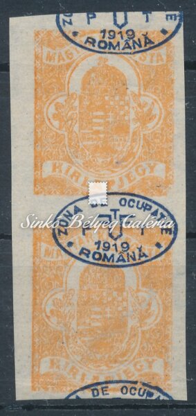 Leírás | 1919. Debrecen (I.) (Román megszállás) Függőleges Hírlapbélyeg pár eltolódott felülnyomattal! Bodor M. bélyegszakértő hátoldali bevizsgáló jelével. / 1919. Debrecen (I.) (Romanian occupation) Vertical Newspaper stamp pair with shifted overprint! With the stamp expert, M. Bodor's proof sign on the backside. |