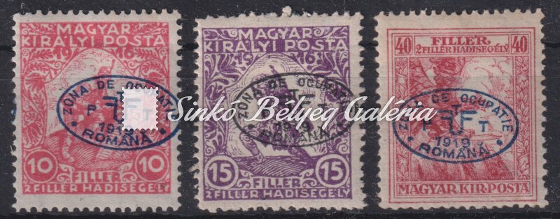 Leírás | 1919. Debrecen (I.) (Román megszállás) Hadisegély (III.) bélyegek. Bodor M. bélyegszakértő hátoldali bevizsgáló jelével. Katalógus érték: 14.000 HUF / 1919. Debrecen (I.) (Romanian occupation) Military Aid (III.) stamps. With the stamp expert, M. Bodor's proof sign on the backside. Catalogue value: 14.000 HUF |