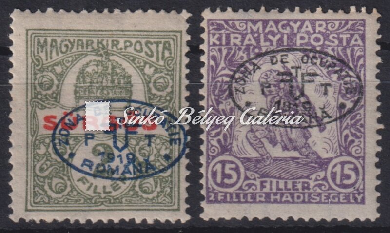 Leírás | 1919. Debrecen (I.) (Román megszállás) 2db bélyeg. Bodor M. bélyegszakértő hátoldali bevizsgáló jelével. / 1919. Debrecen (I.) (Romanian occupation) 2 stamps. With the stamp expert, M. Bodor's proof sign on the backside. |