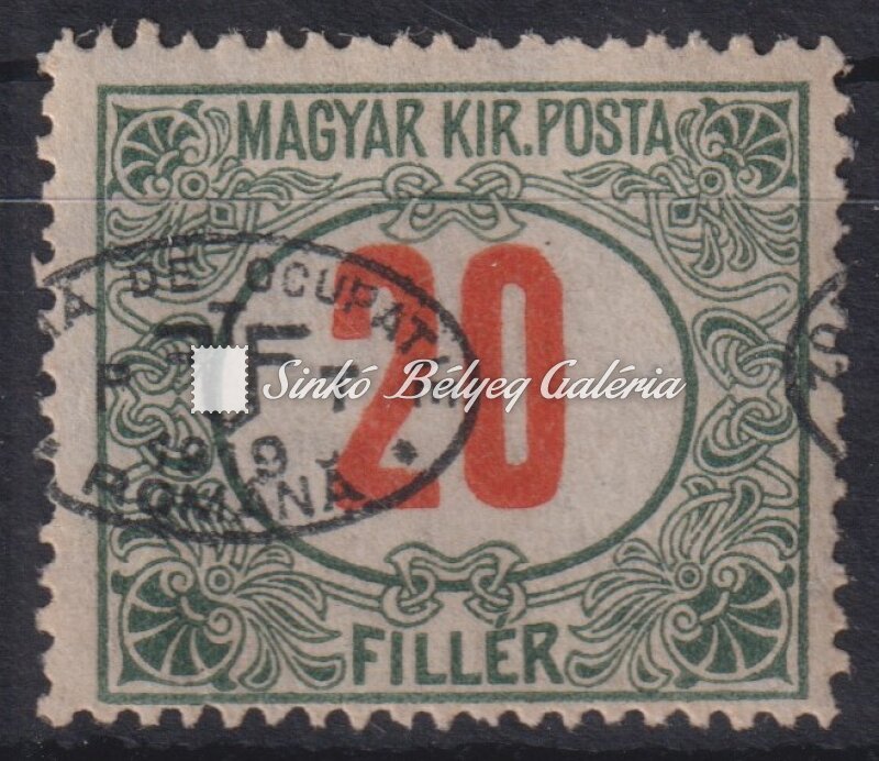 Leírás | 1919. Debrecen (I.) (Román megszállás) 20f Portó bélyeg eltolódott felülnyomattal! Bodor M. bélyegszakértő hátoldali bevizsgáló jelével. / 1919. Debrecen (I.) (Romanian occupation) 20f Porto stamp with shifted overprint! With the stamp expert, M. Bodor's proof sign on the backside. |