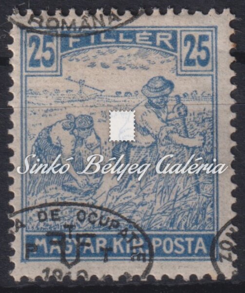 Leírás | 1919. Debrecen (I.) (Román megszállás) 25f Arató bélyegen jelentősen elcsúszott felülnyomat! Hátoldali bevizsgáló jellel. / 1919. Debrecen (I.) (Romanian occupation) 25f Harvester stamp with significantly slipped overprint! With proof sign on the backside. |