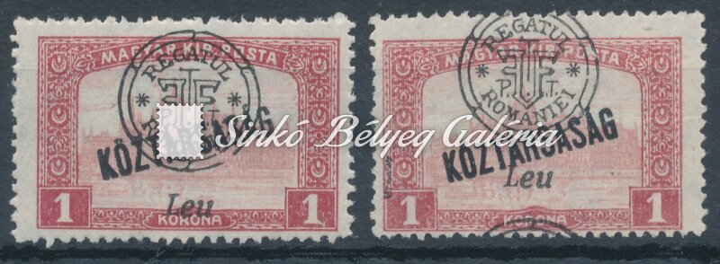 Leírás | 1919. Nagyváradi felülnyomás (Román megszállás) 1K Köztársaság/Parlament bélyegen eltolódott felülnyomás. Bodor M. bélyegszakértő hátoldali bevizsgáló jelével. / 1919. Nagyvarad overprint (Romanian occupation) Shifted overprint on 1K Republic/Parliament stamp. With the stamp expert, M. Bodor's proof sign on the backside. |