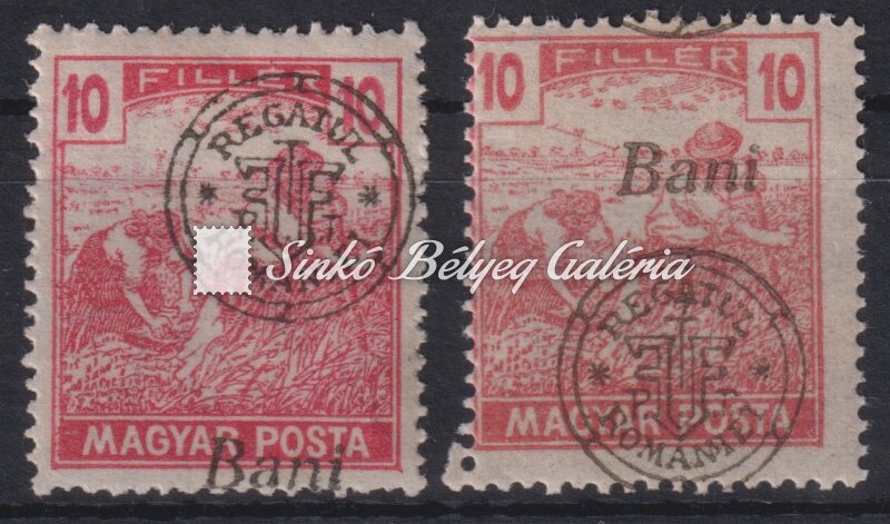 Leírás | 1919. Nagyváradi felülnyomás (Román megszállás) 2db 10f Arató bélyeg elcsúszott felülnyomattal! Bodor M. bélyegszakértő hátoldali bevizsgáló jelével. / 1919. Nagyvarad overprint (Romanian occupation) 2 pieces of 10f Harvester stamp with slipped overprints! With the stamp expert, M. Bodor's proof sign on the backside. |