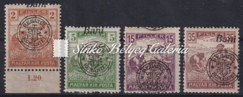 Leírás | 1919. Nagyváradi felülnyomás (Román megszállás) 4db Arató bélyeg eltolódott felülnyomattal! Bodor M. bélyegszakértő hátoldali bevizsgáló jelével. / 1919. Nagyvarad overprint (Romanian occupation) 4 Harvester stamps with shifted overprints! With the stamp expert, M. Bodor's proof sign on the backside. |