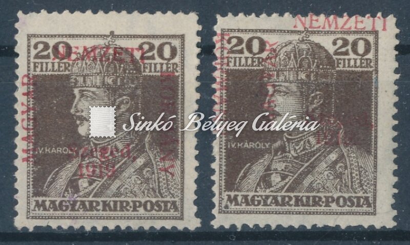 Leírás | 1919. Szeged (Francia megszállás) 20f Károly bélyeg jelentős felülnyomat elcsúszással. Bodor M. bélyegszakértő hátoldali bevizsgáló jelével. / 1919. Szeged (French occupation) 20f Karoly stamp with significantly slipped overprint. With the stamp expert, M. Bodor's proof sign on the backside. |