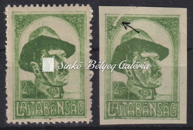 Leírás | 1921. Nyugat-Magyarország (VII.) 20f bélyeg bal felső sarkában jelentős nyomdai hibával! Bodor M. bélyegszakértő bevizsgáló jelével. / 1921. Western Hungary (VII.) 20f stamp with significant typographical error in upper left corner! With the stamp expert M. Bodor's proof sign. |