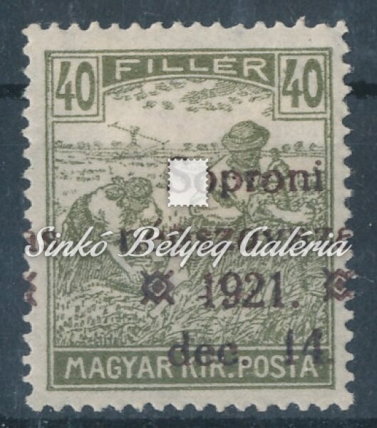 Leírás | 1921. Nyugat-Magyarország (VIII.) 40f Arató bélyeg látványos felülnyomat elcsúszással. Bodor M. bélyegszakértő bevizsgáló jelével. / 1921. Western Hungary (VIII.) 40f Harvester stamp with spectacularly slipped overprint. With the stamp expert M. Bodor's proof sign. |