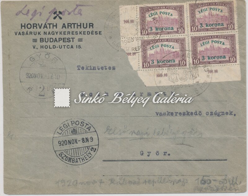 1920.11.07. Légiposta levél BUDAPEST-GYŐR