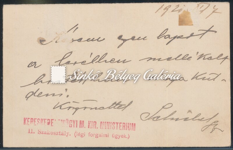 1920.11.07. Légiposta levél BUDAPEST-SZOMBATHELY