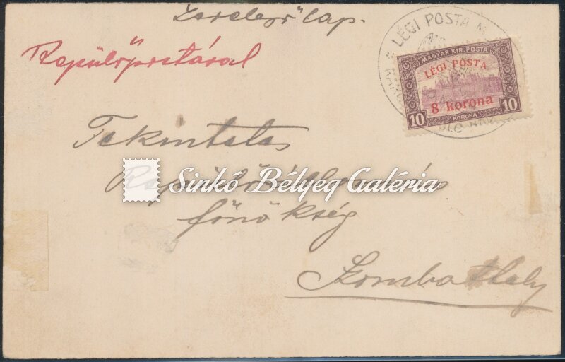 Leírás | 1920.11.07. Légiposta levél BUDAPEST-SZOMBATHELY között. 8K/10K bélyeggel bérmentesítve. / 1920.11.07. Airmail letter between BUDAPEST-SZOMBATHELY. Franked with 8K/10K stamp. |
