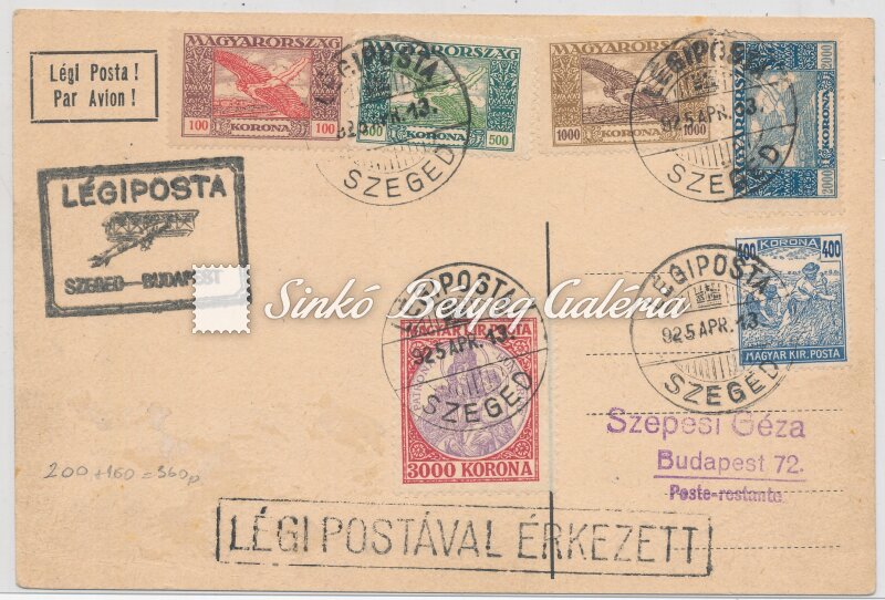 1925.04.13. Légiposta levél SZEGED-BUDAPEST