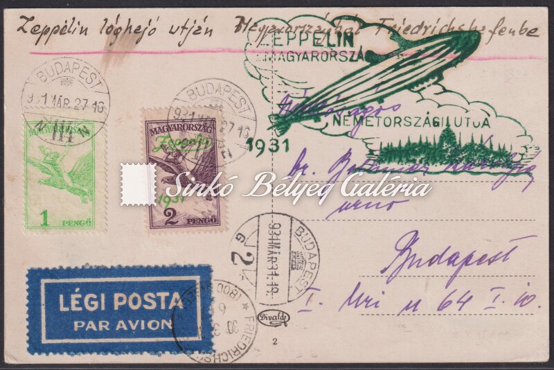 1931.03.19. Légiposta levél Zeppelin Magyarország-Németországi útján