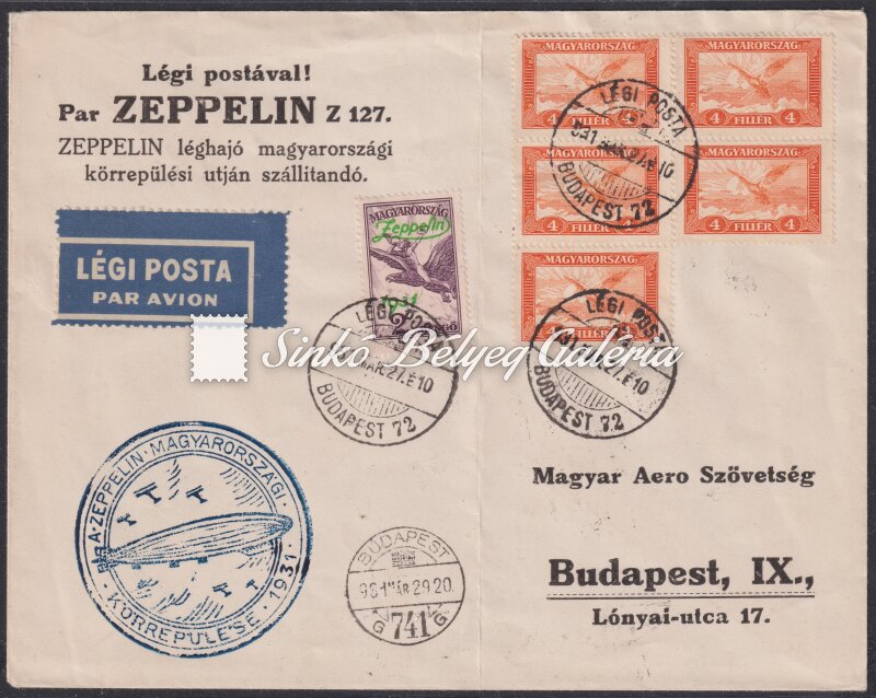 1931.03.27. Légiposta levél Zeppelin magyarországi körrepülési útján BUDAPEST