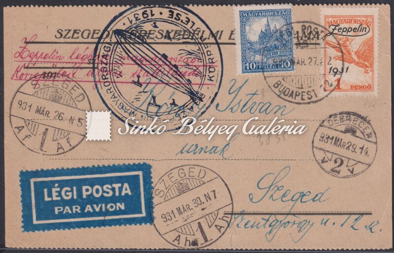 1931.03.27. Légiposta levél BUDAPEST-SZEGED
