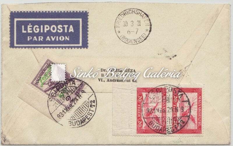1931.03.28. Légiposta levél BUDAPEST-ASTORIA