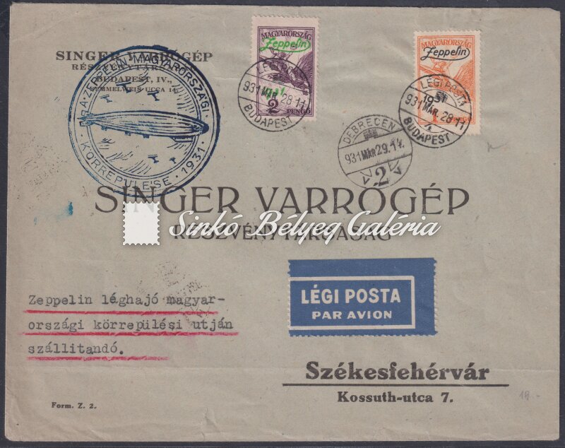 Description | 1931.03.28. Légiposta levél BUDAPEST-SZÉKESFEHÉRVÁR között. A Zeppelin Magyarországi Körrepülés útján. 1+2P díjtétellel bérmentesítve! / 1931.03.28. Airmail letter between BUDAPEST-SZEKESFEHERVAR. Via Zeppelin's Hungarian Circular Flight. Franked with 1+2P fare. |