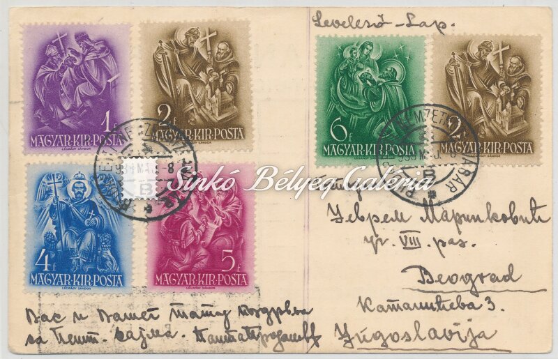 Description | 1938.05.08. Légiposta levél BUDAPEST-BEOGRAD között. 20f viteldíjjal bérmentesítve. / 1938.05.08. Airmail letter between BUDAPEST-BEOGRAD. Franked with 20f fare. |