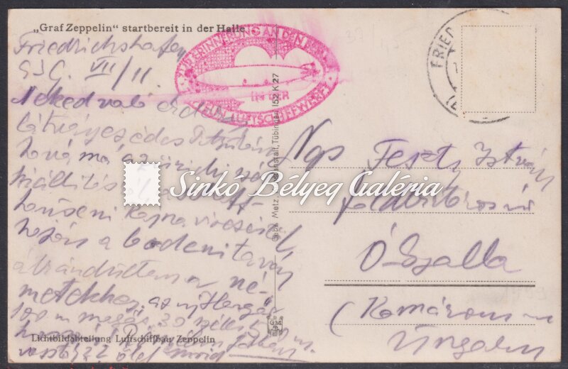 1939.07.11. Graf Zeppelin levelezőlap FRIEDRICHSHAFEN - Ó-GYALLA
