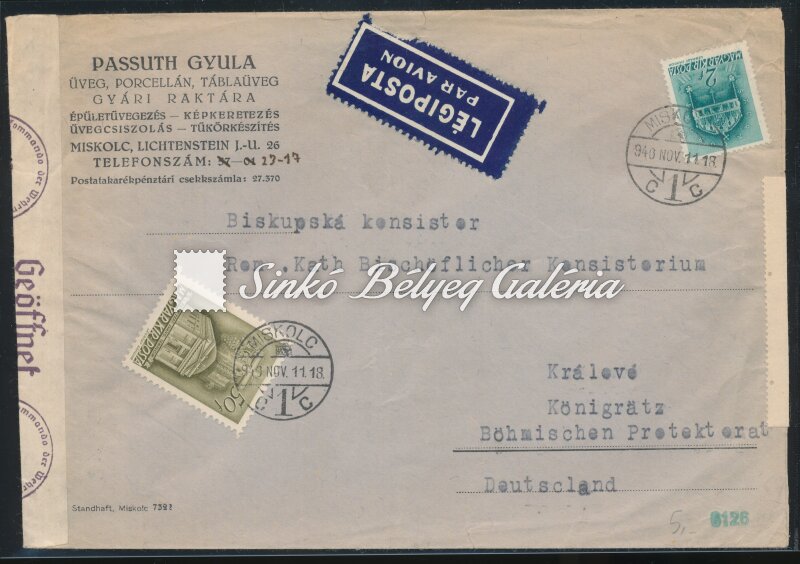 1940.11.11. Légiposta levél MISKOLC-KRÁLOVÉ KÖNIGGRATZ