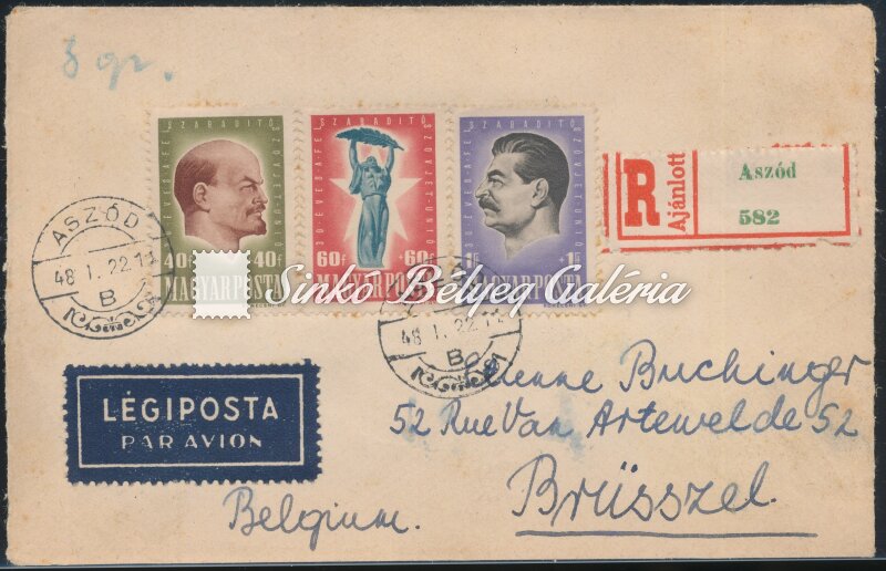 1948.01.22. Ajánlott légiposta levél ASZÓD-BRÜSSZEL