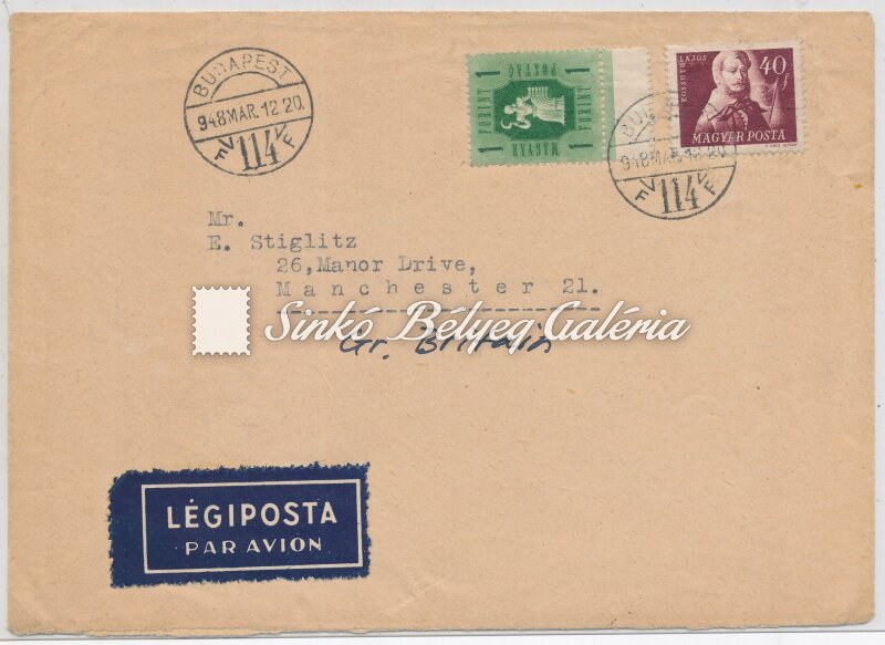 1948.03.12. Légiposta levél BUDAPEST-MANCHESTER