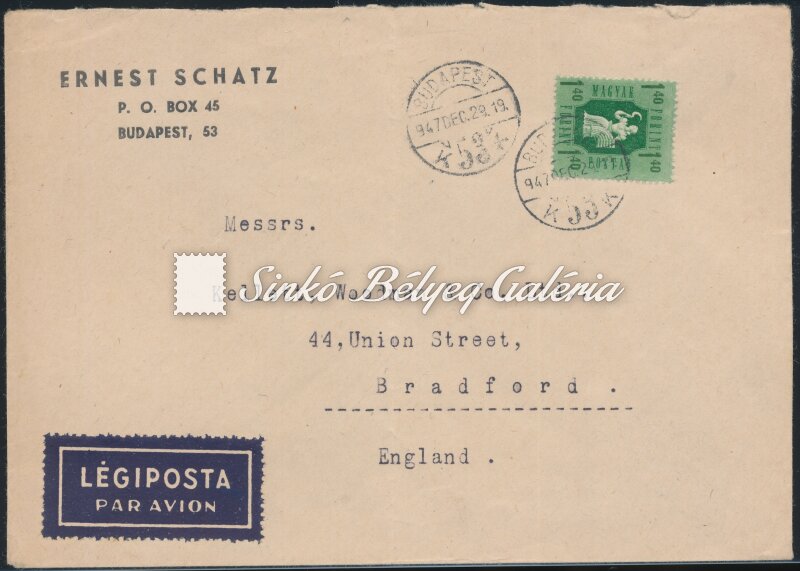 1948.12.29. Légiposta levél BUDAPEST-BRADFORD