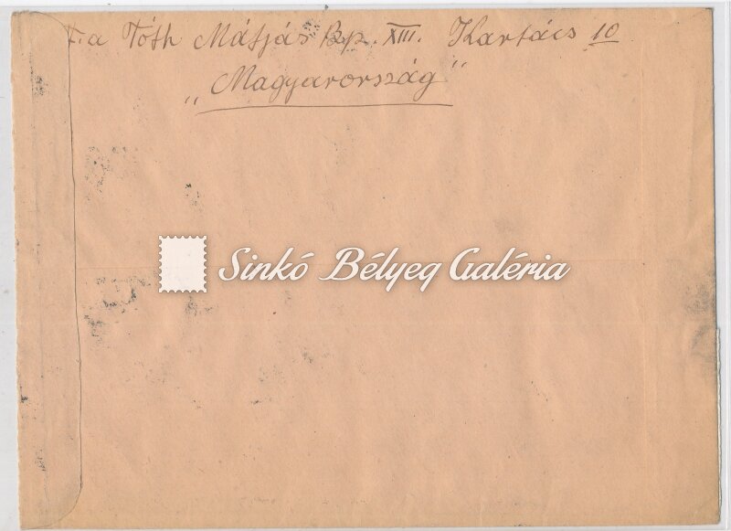 Leírás | 1949.02.01. Ajánlott légiposta levél BUDAPEST-PRAHA között. 3,80Ft díjtétellel. "Levélszekrény utján adatott fel" bélyegzéssel. 8f, 12f, 20f, 40f és 3Ft bélyegekkel a Centenárium sorozatból bérmentesítve. "A Magyar Köztársaság Megalapításának Évfordulója" alkalmi bélyegzéssel. / 1949.02.01. Registered airmail letter between BUDAPEST-PRAHA. 3,80Ft fare. With "Sent from a mailbox" cancellation. Franked with 8f, 12f, 20f, 40f and 3Ft stamps of the Centenary set. With "Anniversary of the founding of the Republic of Hungary" occasional cancellation. |