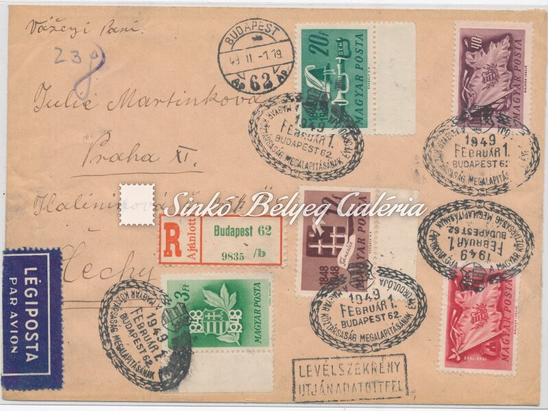 1949.02.01. Ajánlott légiposta levél BUDAPEST-PRAHA