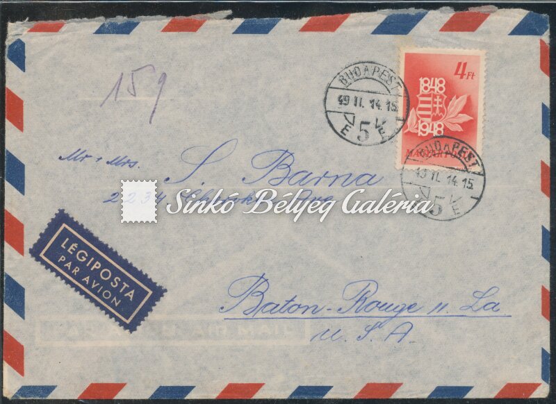 1949.02.14. Légiposta levél BUDAPEST-BATON ROUGE