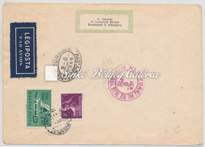 1949.08.18. Ajánlott légiposta levél BUDAPEST - NEW-YORK
