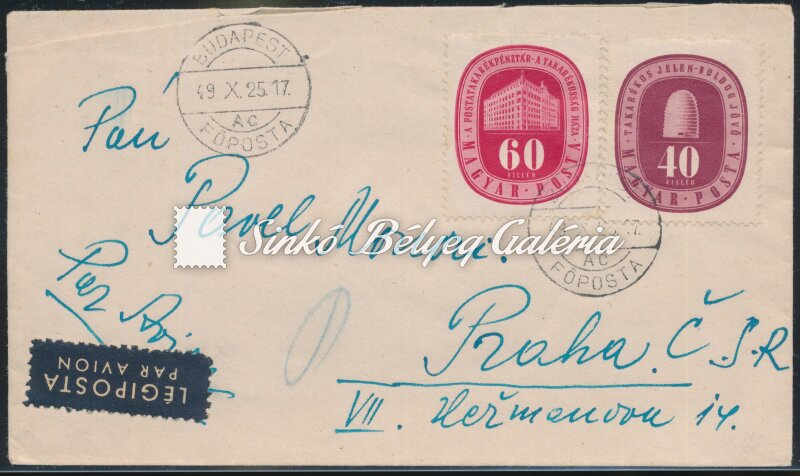 1949.10.25. Légiposta levél BUDAPEST-PRAHA