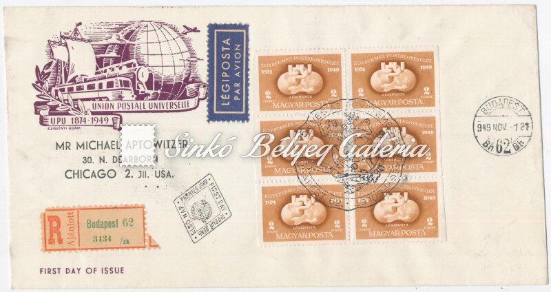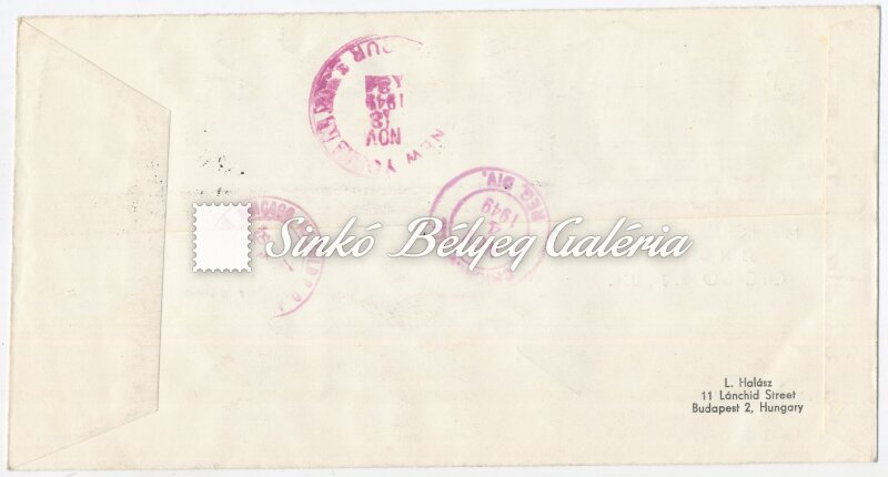 1949.11.01. Ajánlott légiposta levél BUDAPEST-CHICAGO