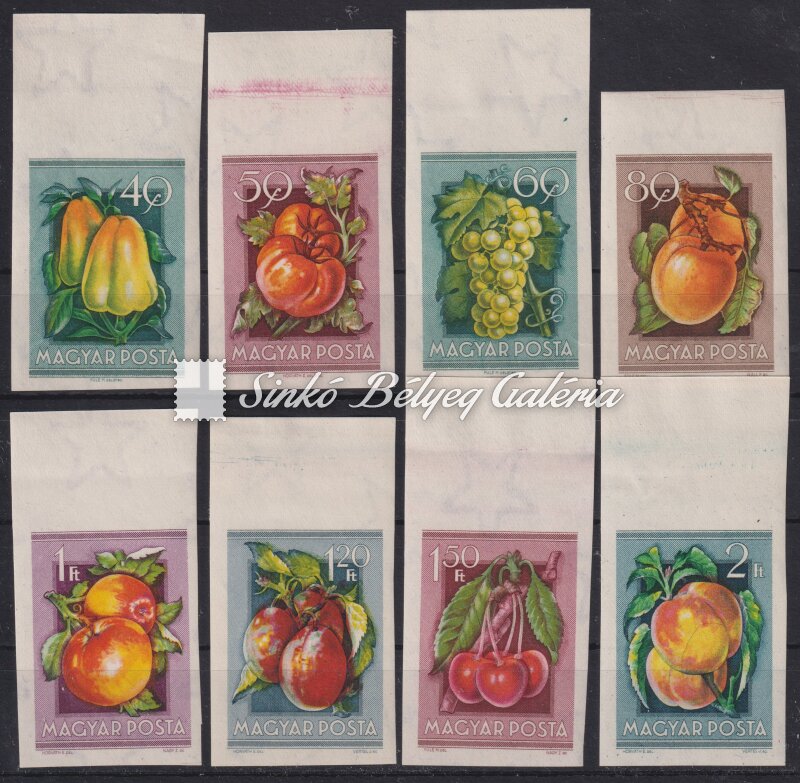 Description | 1954. Gyümölcsök (I.) Felső ívszéli sor! / 1954. Fruits (I.) Set from the upper margin of the sheet! |