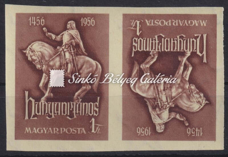 Leírás | 1956. Hunyadi János Fogazatlan fordított pár! / 1956. Janos Hunyadi Imperforated reverse pair! |