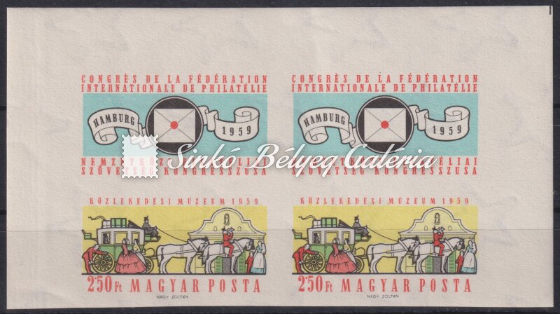Leírás | 1959. FIP (II.) A kisív felső része! / 1959. FIP (II.) Upper part of the miniature sheet! |