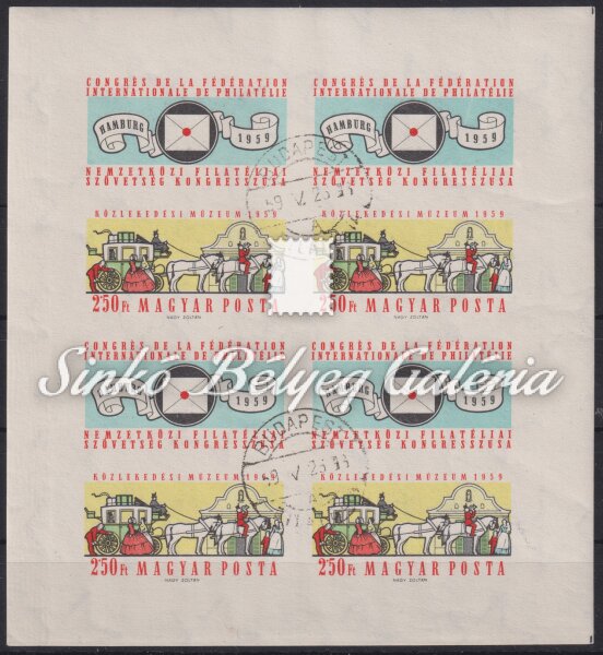 Leírás | 1959. FIP (II.) kisív Katalógus érték: 20.000 HUF / 1959. FIP (II.) miniature sheet Catalogue value: 20.000 HUF |