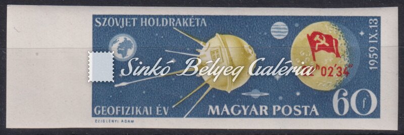 Leírás | 1959. Holdrakéta Ívszéli példány XIII. B vízjellel! / 1959. Moon Rocket Copy from the margin of the sheet with XIII. B watermark! |