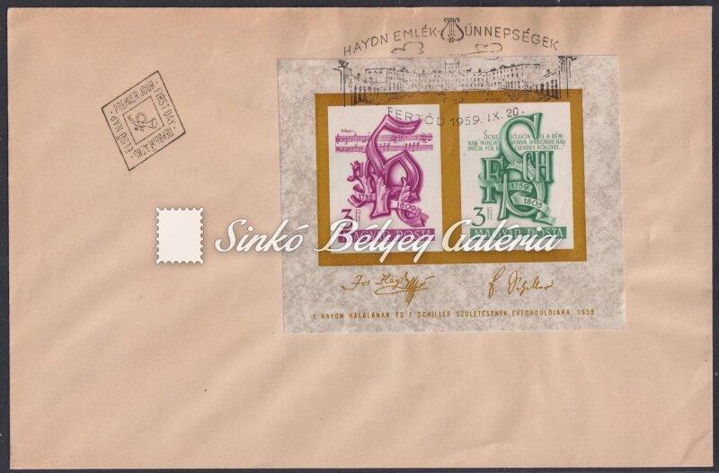 Leírás | 1959. Joseph Haydn és Friedrich Schiller - Blokk FDC-n! / 1959. Joseph Haydn and Friedrich Schiller - Block on FDC! |