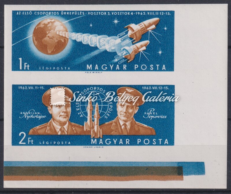 Leírás | 1962. Az első csoportos űrrepülés - L Ívsarki példány! / 1962. The first group space flight - L Copy from the corner of the sheet! |