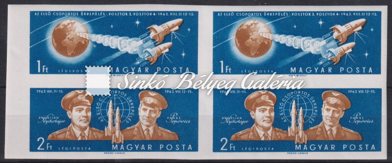 Leírás | 1962. Az első csoportos űrrepülés - L Ívszéli párban! / 1962. The first group space flight - L In pair from the margin of the sheet! |