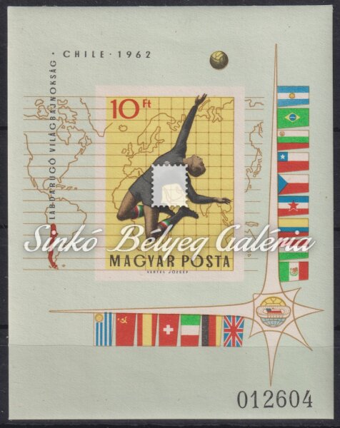Leírás | 1962. Labdarúgó Világbajnokság (I.) - Chile - Blokk Katalógus érték: 6.000 HUF / 1962. Football World Championship (I.) - Chile - Block Catalogue value: 6.000 HUF |