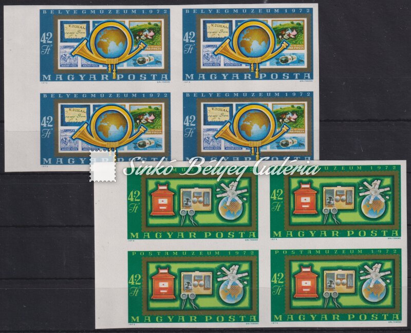 Description | 1972. A Bélyegmúzeum és a Postamúzeum újbóli megnyitása Ívszéli 4-es tömb! / 1972. Reopening of the Stamp Museum and Postal Museum Block of 4 set from the margin of the sheet! |