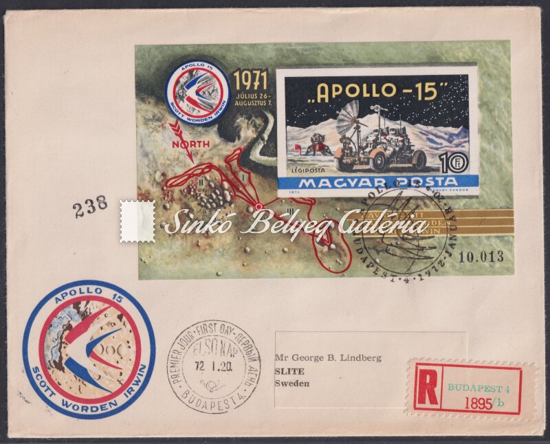 Leírás | 1972. Apollo-15 - Blokk - L FDC sorszámozott borítékon! / 1972. Apollo-15 - Block - L On numbered FDC envelope! |